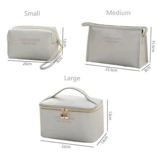 Large Capacity 3Pcs PU Travel Cosmetic Bag