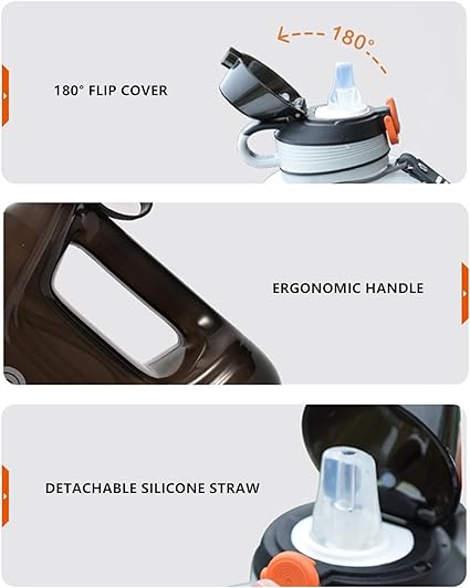 【PORTABLE AND EASY TO CLEAN】Outdoor storage design with sturdy handle and nylon handle makes the fitness water bottle ideal to carry to the outdoors, gym, office and outdoor recreation. It's easier to clean the entire bottle with baking soda and vinegar.